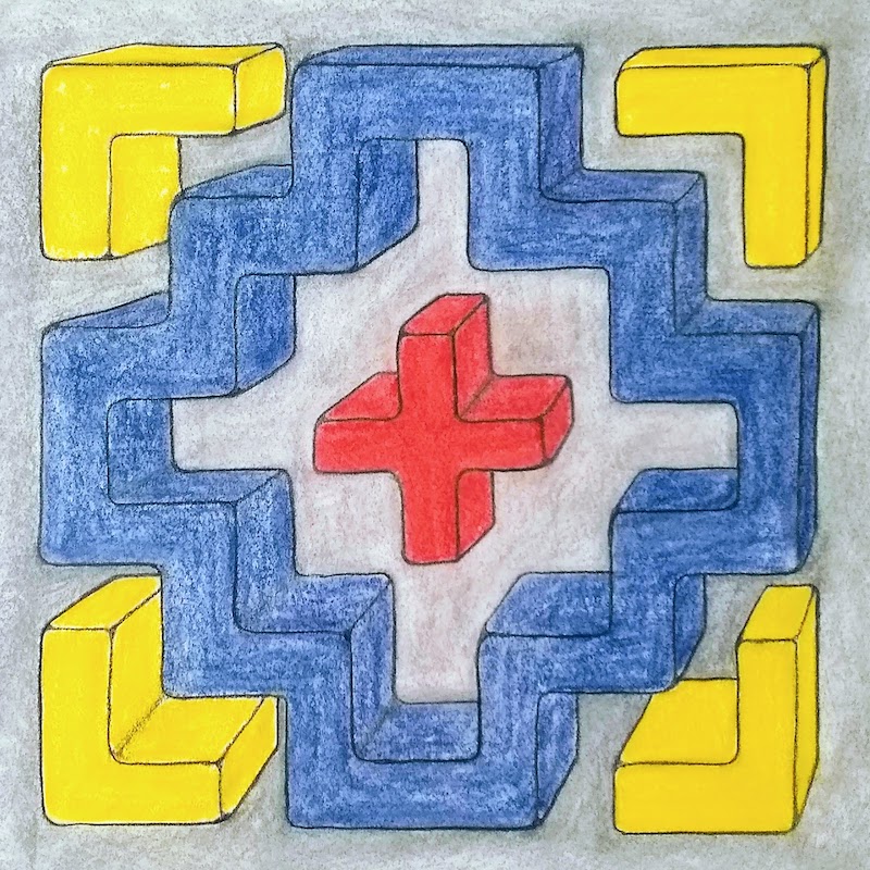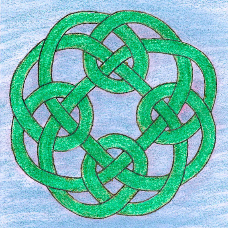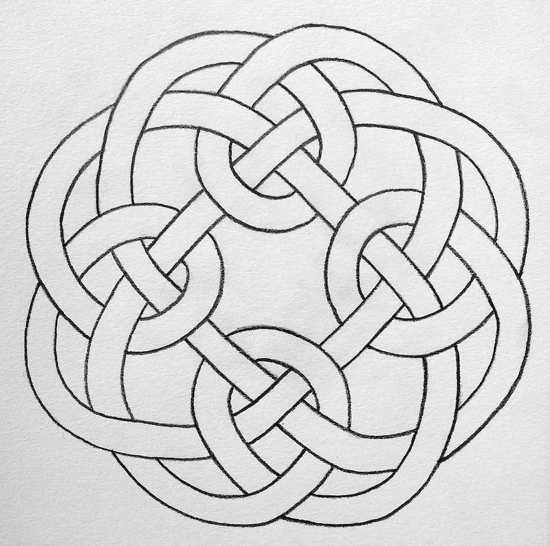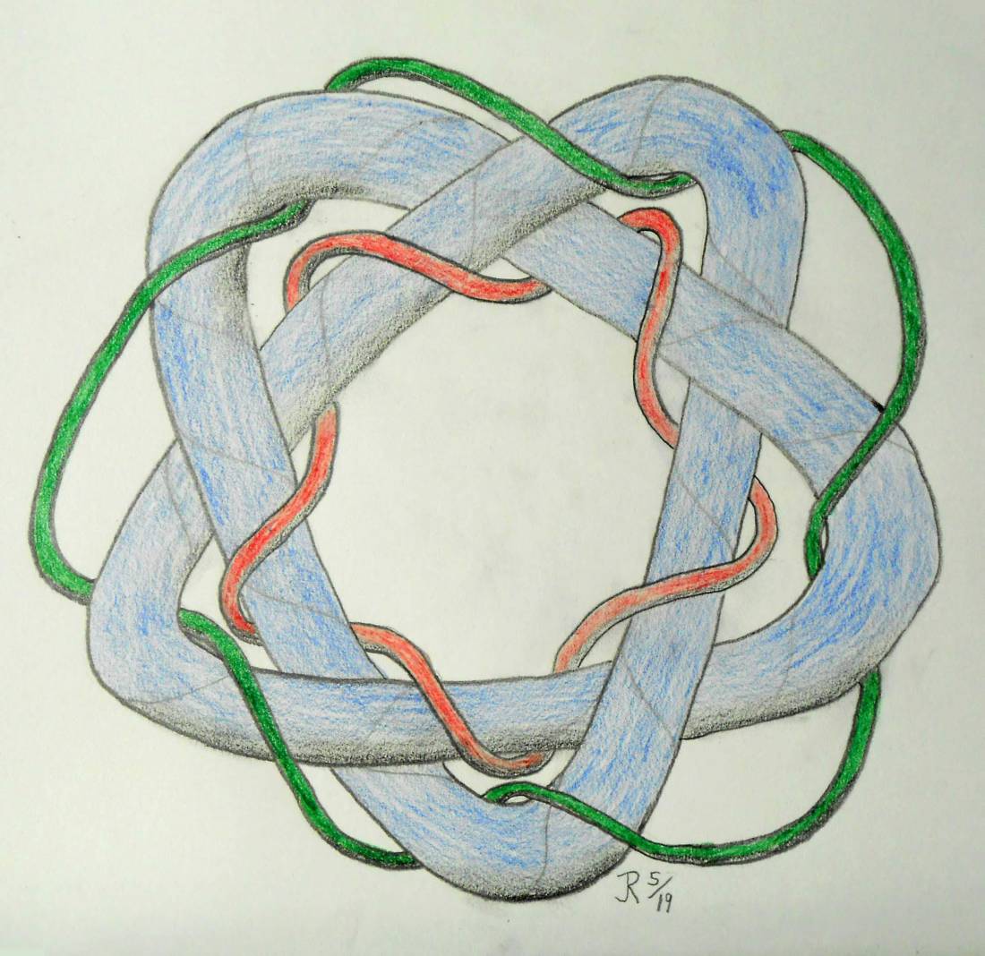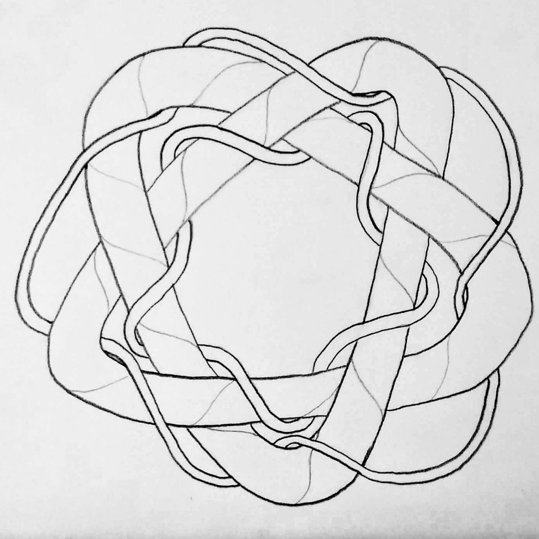 Tried my hand at a more complicated form. It is amazing how knotted one cord can be. Choose some starting point and trace the cord. You always turn the same direction and return to the same place.
