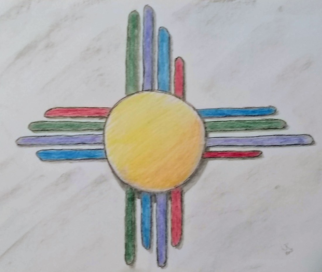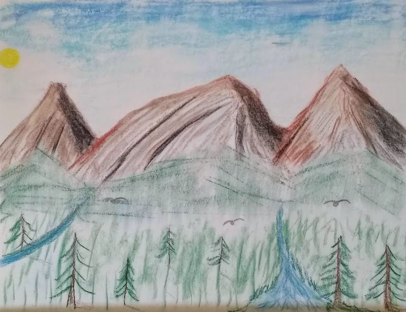 Graphite and watercolor pencils. Some watercolor moistened to enhance saturation and uniformity.