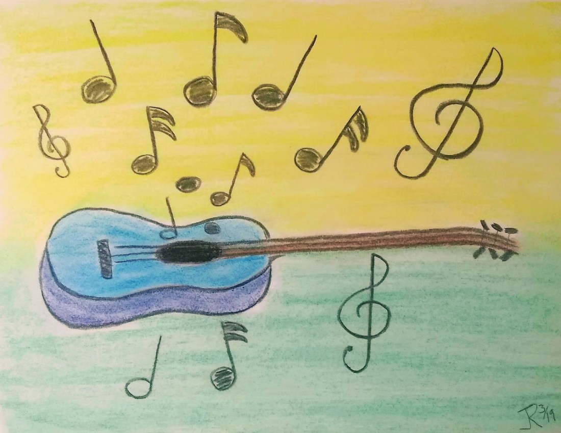 The drawing was scanned and opened in Photoshop Elements. There I added colors. It was easy to try out different color combinations and effects, undo them, and try others at will. The proportions of the image were selected to make it fit as my header image in facebook.