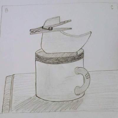 The class was in 10 video lessons covering topics of pencils, charcoal, perspective, tone, shading, contours, value, and color. In each lesson, the teacher illustrated the topic and suggested assignments for practice. As my starter lesson, I chose to draw this note clip made by my dad.