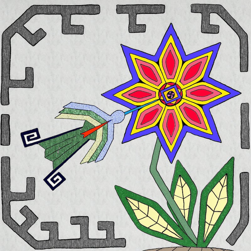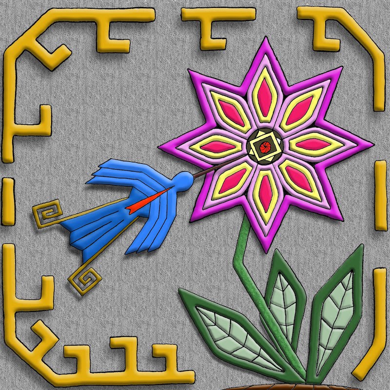 A camera digitized the drawing for upload. Color and textured fill was added with Photoshop Elements.